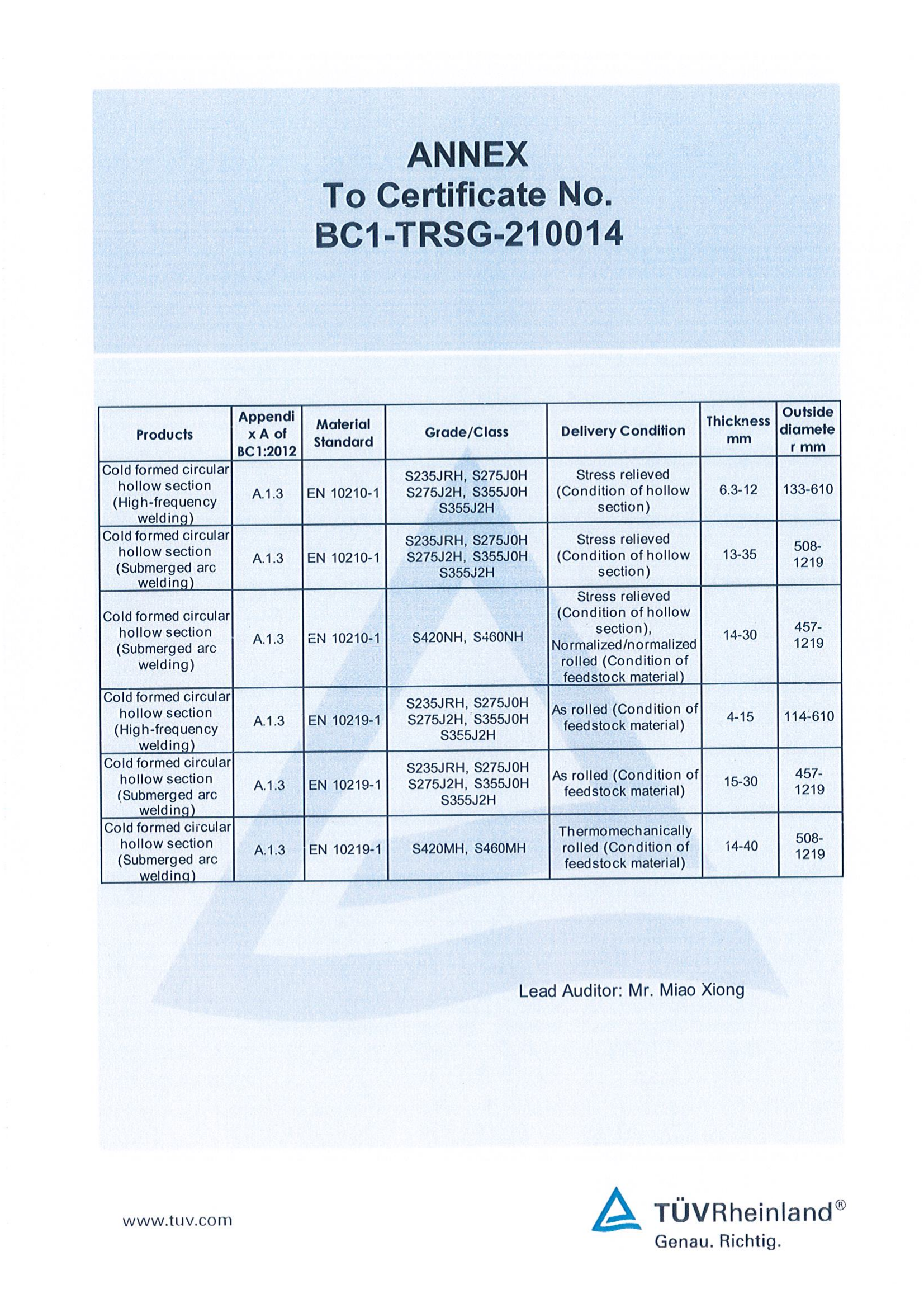 公司現有17條新型的自動化鋼管生產線,包括Φ73-660.4高頻直縫焊鋼管生產線14條、Φ406.4-Φ1422.4直縫雙面埋弧焊鋼管生產線3條,并配備有一條防腐生產線,可進行3PE、2PE、FBE、2PP、3PP防腐處理,同時還可提供鋼管深加工服務。公司擁有先進的理化實驗室,可承擔鋼管的各項物理及化學檢測與試驗。公司先后取得了ISO9001質量管理體系認證、ISO14001環境管理體系認證、ISO45001職業健康安全管理體系認證、特種設備制造許可證、API5L和API2B認證證書、歐盟CE認證、俄羅斯GOST認證、法國船級社(BV)工廠認證、科威特石油入網認證、中海油入網證、安全生產標準化二級企業等標準質量體系認證。
